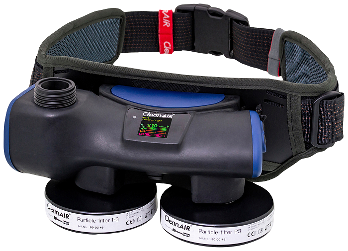 Laitteessa on automaattinen ilmanvirtauksen säätö, joka pitää ilmanvirtauksen tasaisena ja halutulla tasolla. Laitteen ilmansyöttö voidaan säätää yksilöllisesti halutulle tasolle 120–235 l/min. Korkeatasoinen elektroninen varoitusjärjestelmä varoittaa ilman virtausnopeuden pienentymisestä, kun suodattimet ovat tukkeutumassa tai akun varaustila laskee hälytysrajalle. Yksikön ergonominen muoto, kevyt paino ja litteä profiili lisäävät käyttömukavuutta, myös ahtaissa ympäristöissä. Iskuja ja kemikaaleja kestävä runko on helppo pitää puhtaana. Puhaltimen rungon tiiveys, IP64-luokka ja automaattisesti sulkeutuvat suodatinaukot estävät haitallisten aineiden pääsyn puhallinlaitteen sisäosiin. Yksikkö soveltuu käytettäväksi yhdessä erilaisten CleanAIR kasvo-osien kanssa.