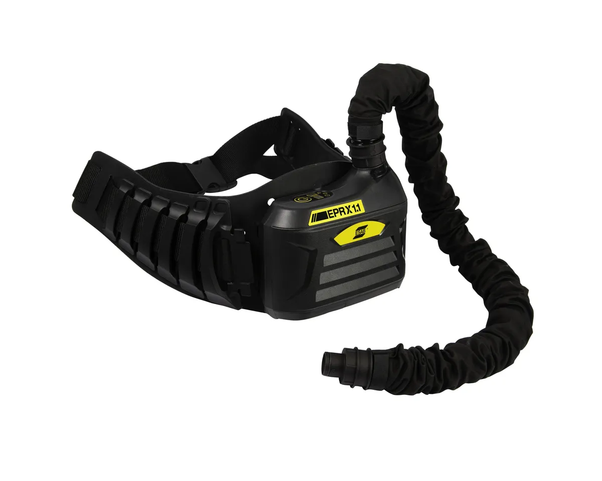 ESABin PAPR-yksikkö EPR-X1.1 yhdistyy saumattomasti kaikkiin nykyisiin ilmahitsausnaamareita varten valmistettuihin ESAB-tuotteisiin ja tarjoaa edistyneen suojauksen haitallisilta hitsaushuuruhiukkasilta.