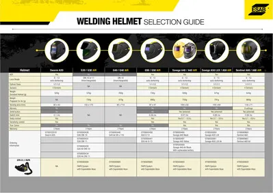 - Yhteensopiva kaikkien raitisilmavalmiudella valmistettujen ESAB-tuotteiden kanssa: Sentinel A-60; Savage A-40; G-30/40/50; F-20