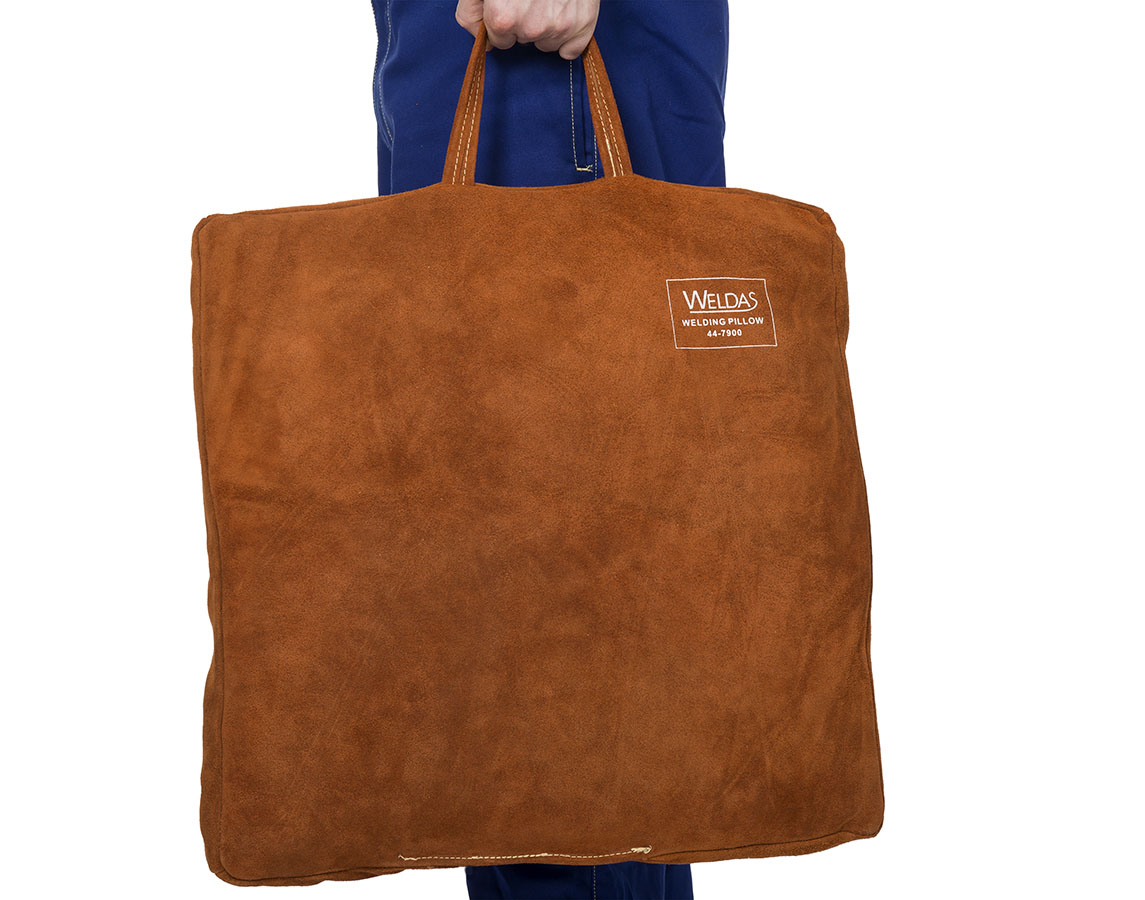 Lämpö- ja palosuojattu lehmännahkainen hitsarintyyny jossa on kätevä kantokahva kuljettamiseen.