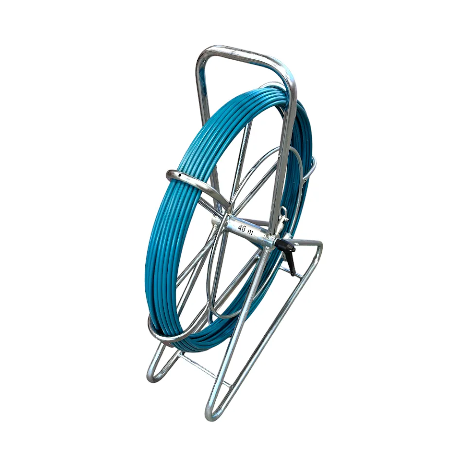 Juurikaasutulppien asennus pitkiin putkistoihin onnistuu kätevästi tällä 40m työntävaijeri kelalla.