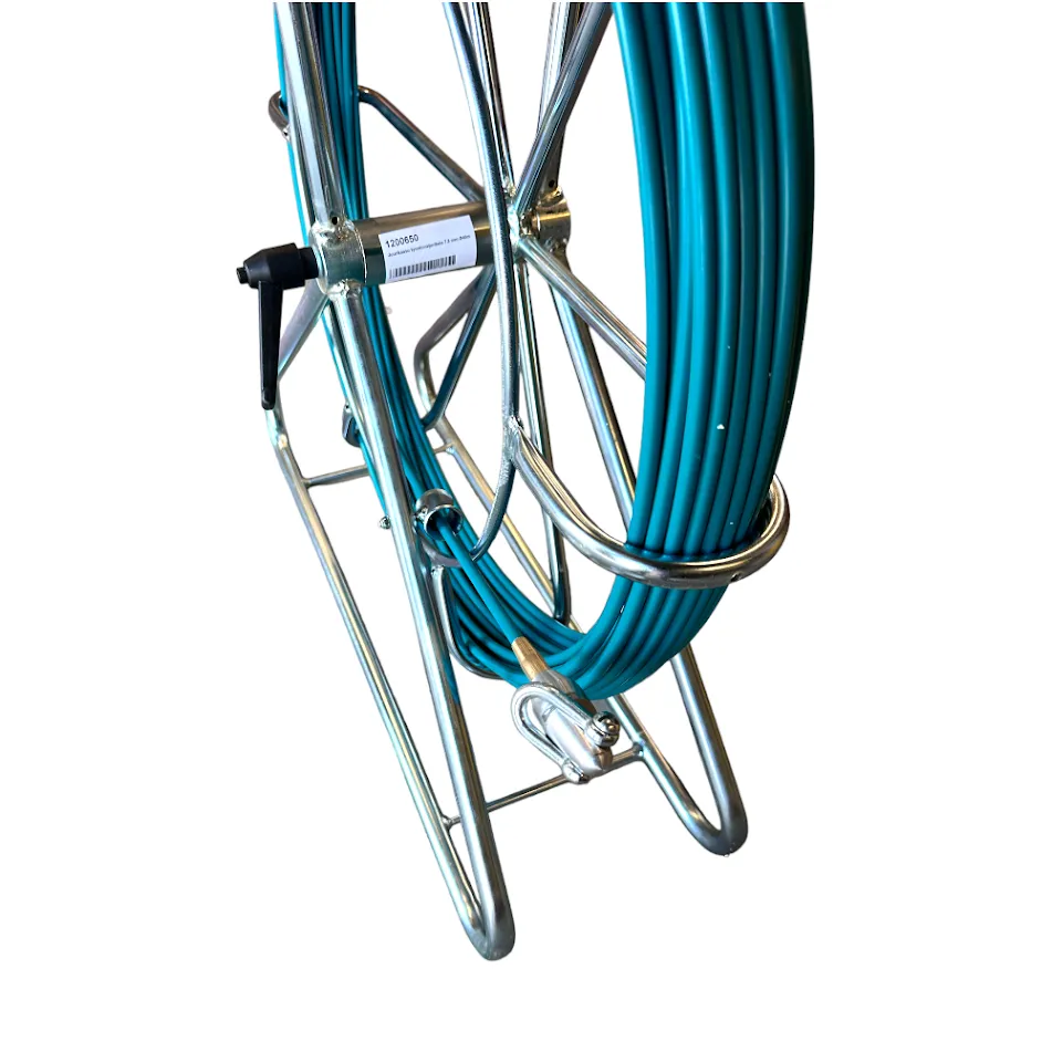 Juurikaasutulppien asennus pitkiin putkistoihin onnistuu kätevästi tällä 40m työntävaijeri kelalla.